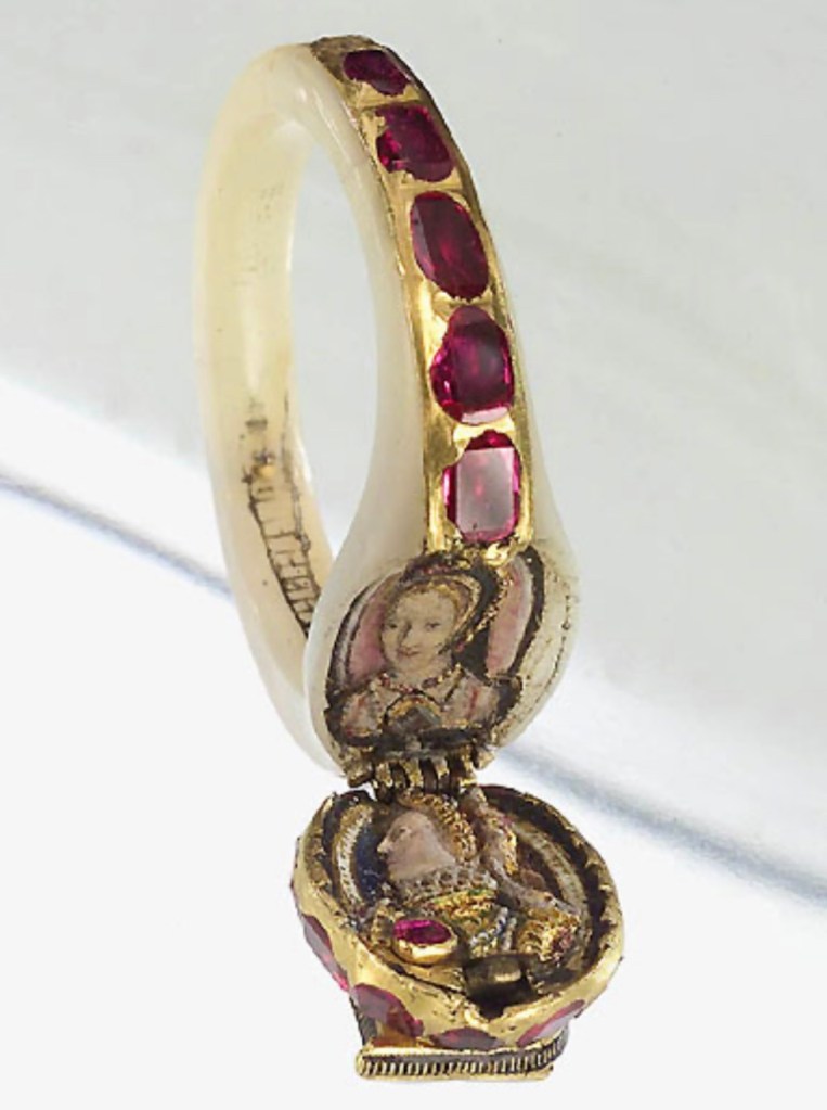 Much of Elizabeth I’s jewellery has long since been lost, dispersed by James I after the Queen’s death, nor is it clear what happened to Carey’s sapphire ring either. Quite likely also lost or given away, no one knows where. The Chequers ring is uniquely special in that it survives, probably bought by the Home family, and descended down the line until acquired by Arthur Lee, First Viscount Lee of Fareham, owner of Chequers country house, which was eventually presented to the nation becoming the country home of the prime minister. The ring remains within the private Chequers collection, and is not on public view.