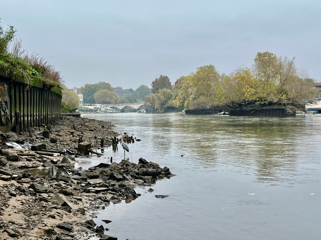A Thames Heron faces the spot where there are still visible traces of the old Tudor/Stuart jetty. In Tudor times, Herons were hunted and eaten at Royal feasts.
