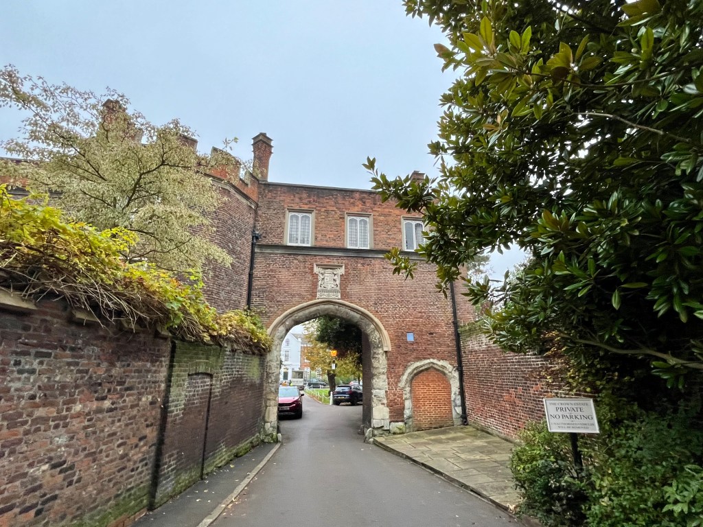 The Gatehouse, one of the few surviving buildings of the Tudor Richmond Palace. It can be accessed via Richmond Green nearby, once used for sport, jousting and other Royal entertainments.
