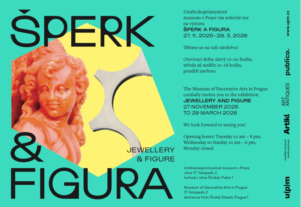 Poster advertising the new exhibition – ‘Jewellery and Figure’ – currently on at UPM, the Decorative Museum of Arts in Prague, until 29th March 2026.