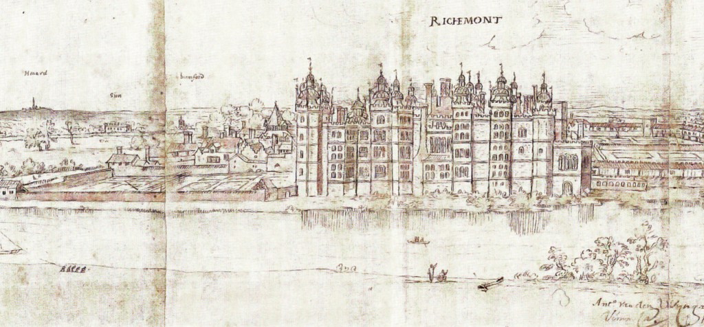 Sketch of the Tudor Richmond Palace riverfront by Antonis Van der Wyngaerde, c. 1562.