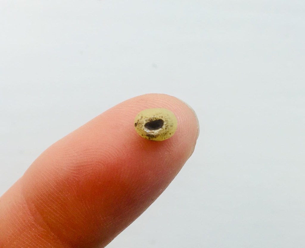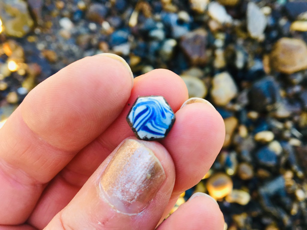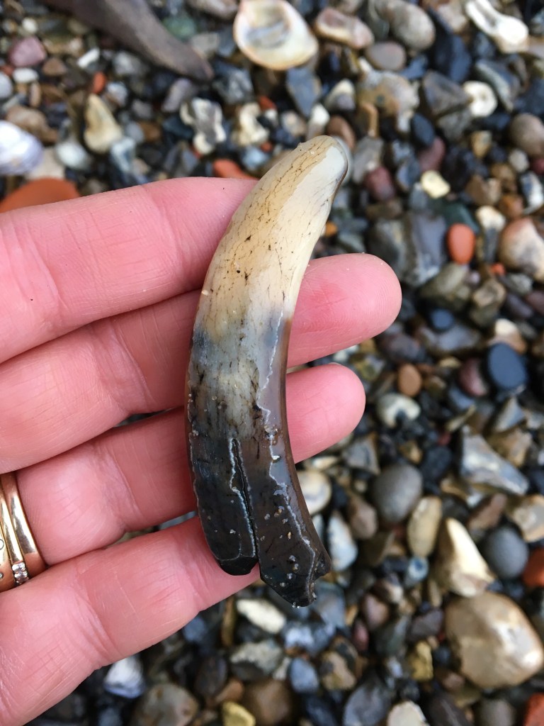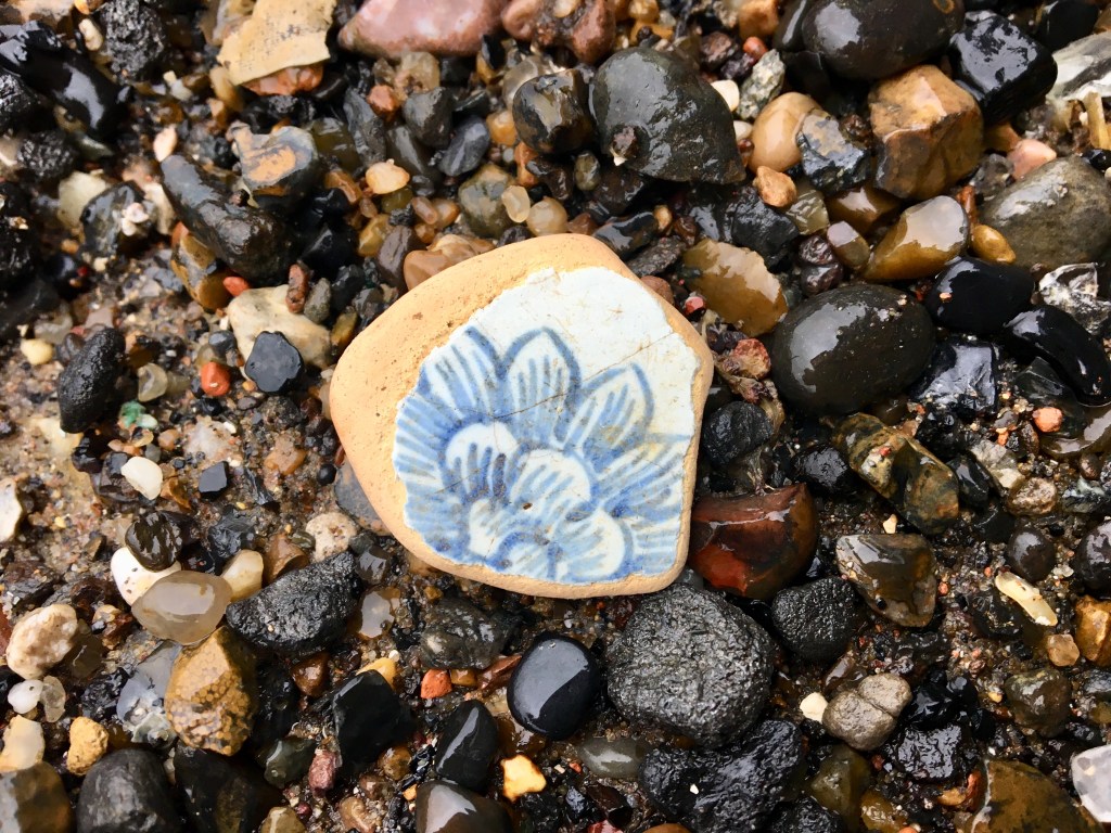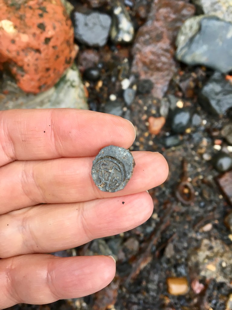 It wasn’t the best of tides that day, the weather was dreich (bleak, nippy and dreary, as the Scots say), the stretch of foreshore busy. It was good to catch up with mudlarking friends I hadn’t seen for a while though no one seemed to have found much that morning. (NB Social media can make it seem as if we find exciting things all the time but the reality is very different and there are many occasions when we come away empty-handed.) Fingers and toes numb with cold, the tide was beginning to come in. I was about to call it a day when I decided to return to a spot I’d already searched and give myself a final ten minutes – in mudlarking parlance we call this ‘last knockings.’