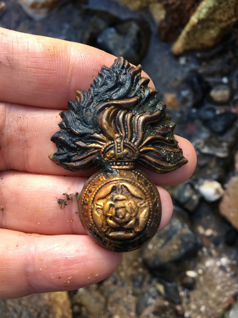 I need to add that, at the time, I had no idea what I’d found. Picking it up, it was initially upside down in a ‘W’ not in an ‘M’ form. So, what was it? Decoration from a belt? From a shoe? From something else entirely? Turning it over, I noticed the ghostly trace of what was once a pin on the back, which intriguingly suggested a badge… If it was a badge, I was sure it must have secular origins though it was a mystery what these might be.