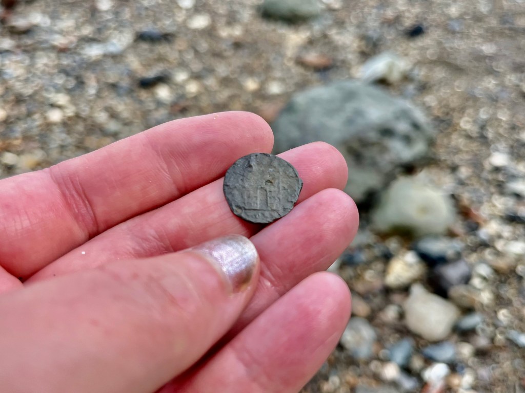 The gaming counter has been heated in a fire and turned white and distorted. Fellow mudlark and artist Ed Bucknall ( also well worth a follow on Instagram at @edjbucknall) has suggested this could indicate the gaming counter might have been part of a Roman cremation. In other words, funerary goods.