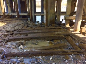As the tide was starting to come in I made my way off the foreshore up a flight of stone steps and started to pack my finds away in my mud-encrusted rucksack. I’m still not quite sure what happened next but, sitting down on a step to check some of the photos I’d taken, I put my mobile phone back in my pocket and somehow ended up kicking my rucksack down the stairs. I should have just let it fall to the bottom. The tide was coming in, though not completely in, and I could have simply walked back down the stairs, picked the bag up and then walked safely back up to the top. Instead, I instinctively lunged for the rucksack as I saw it falling. In that split second I ended up falling too, head first, arms flailing, trying to grab hold of some railings as I lost my balance and in a moment of panic using my left leg as a break.